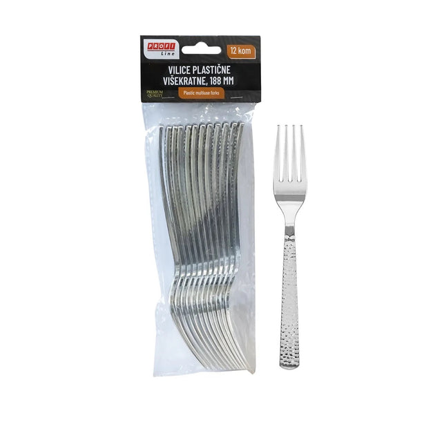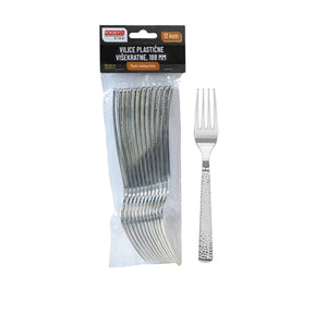 Srebrne jednokratne vilice namijenjene ugostiteljstvu, cateringu i eventima. Kombiniraju elegantan izgled s pouzdanom čvrstoćom, idealne za posluživanje toplih i hladnih jela u profesionalnom okruženju.