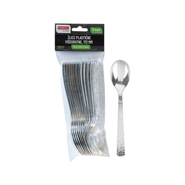 Srebrne jednokratne žlice profesionalne kvalitete, idealne za catering, evente i fast food objekte. Elegantnog izgleda, čvrste izrade i praktičnog pakiranja 12/1, savršene za deserte, juhe i topla jela.