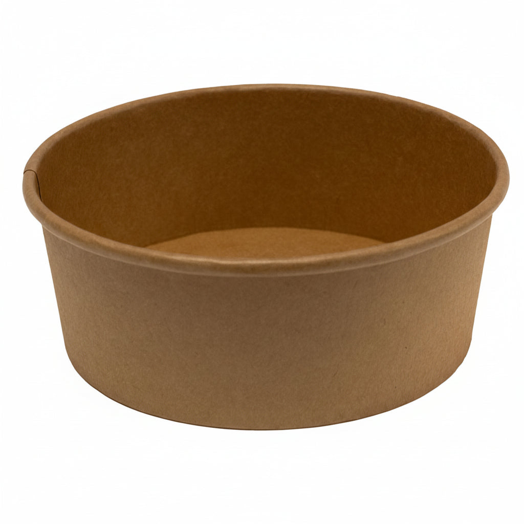Okrugla kraft posuda idealna za salate, hladna jela i zdjele za ponijeti.